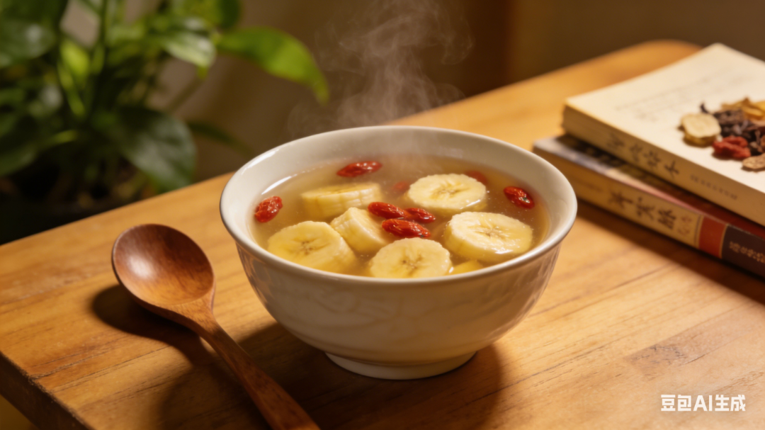 做法:香蕉去皮切成薄片,与枸杞一同下锅,煮开后转小火煮10分钟,根据口味加入适量冰糖即可。