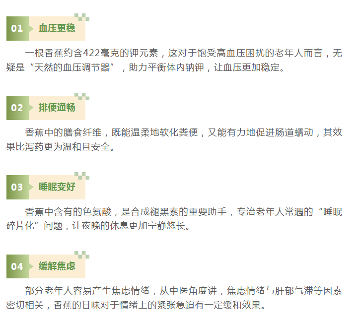 另外,香蕉能润滑肠道,促进排便。香蕉中富含钾、维生素C、膳食纤维以及多种抗氧化物质,这些成分对于维持人体正常生理功能、增强免疫力、促进肠道健康等方面都发挥着重要作用。肠道通畅还有利于改善身体的整体气血状态,进而对焦虑情绪起到间接的缓解作用。