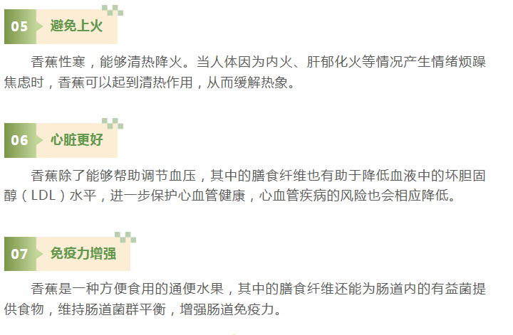 同时,香蕉性寒,能够清热降火。当人体因为内火、肝郁化火等情况产生情绪烦躁焦虑时,香蕉可以起到清热作用,从而缓解热象。