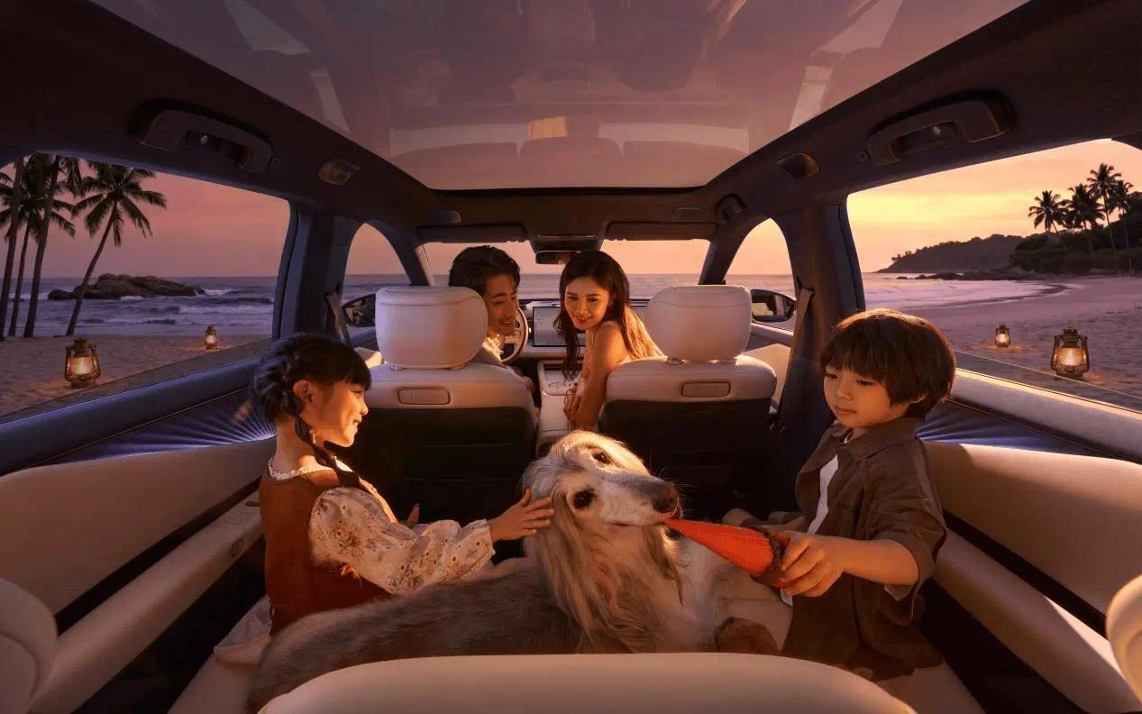 副驾那张AI零重力云毯座椅,内置25个按摩气囊和支撑气囊,全身贴合,加上一键自动泊车能搞定极窄车位,后备箱773L能塞35个登机箱,官方戏称“365天移动衣帽间”。后排室内高度做到同级最高的1285毫米,孩子站着换衣服不用弯腰;中间那个双开门AI冷暖冰箱,零下6度能制冰,55度能热奶,夏天冰可乐、冬天热牛奶一机搞定。连家里的“毛孩子”都有专属模式:离车自动恒温,防误触,手机还能收到宠物遗留提醒。